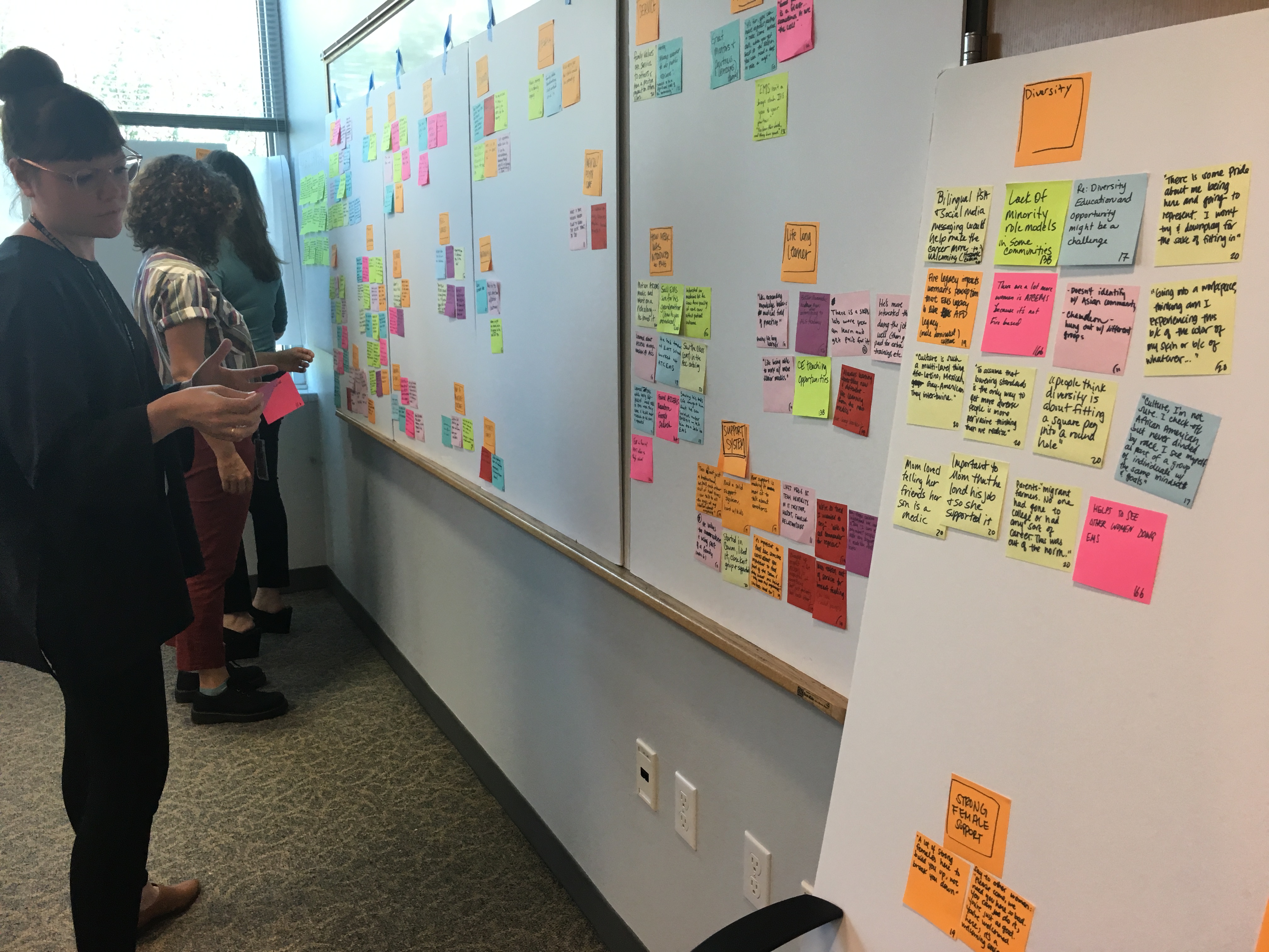After each interview, the team debriefed to put each data point onto a post-it note.