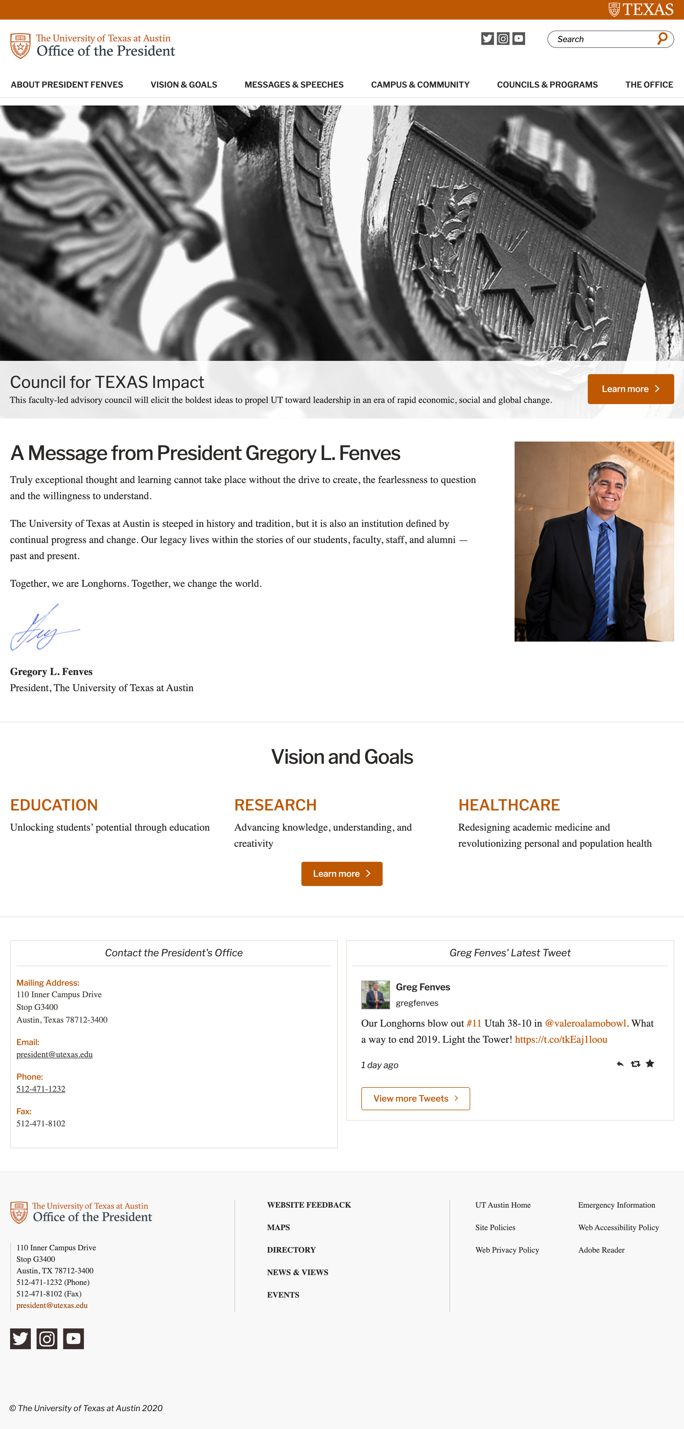 - Removing the “Vision & Goals” section entirely and moved it to the home page to highlight these presidential priorities.